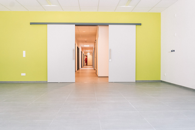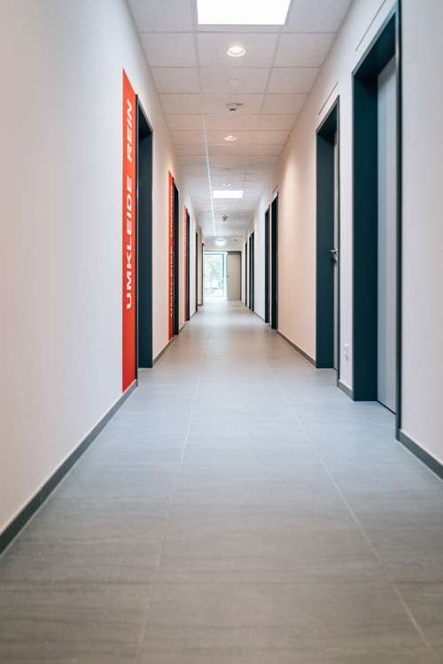 Das Gebäude bietet eine großzügige Fahrzeughalle für fünf Einsatzfahrzeuge, separate Bereiche für Desinfektion und Reinigung sowie Umkleide- und Sanitärräume mit konsequenter Schwarz-Weiß-Trennung. Ergänzt werden die Räumlichkeiten durch moderne Aufenthalts-, Büro- und Schulungsbereiche, die gezielt auf die Bedürfnisse der Einsatzkräfte zugeschnitten sind. Die Raumstruktur fördert Teamarbeit und schafft gleichzeitig Rückzugsorte für Erholung und Regeneration.