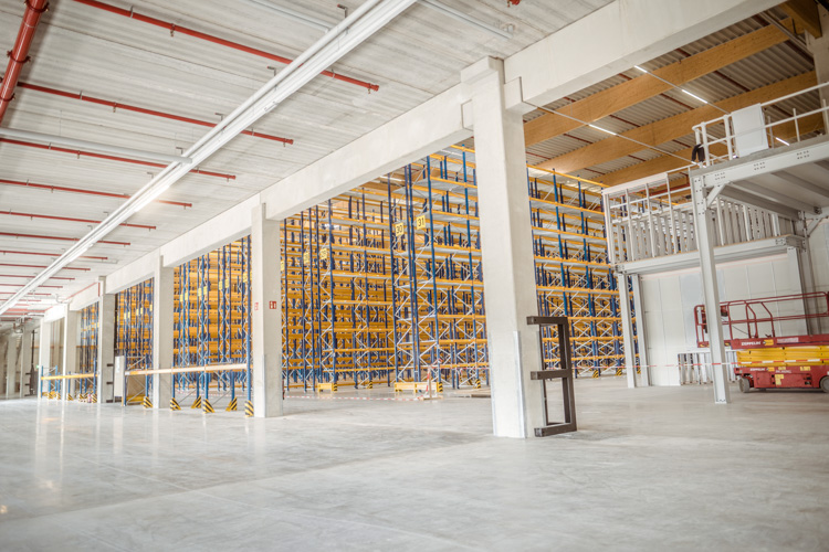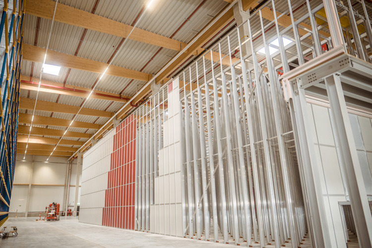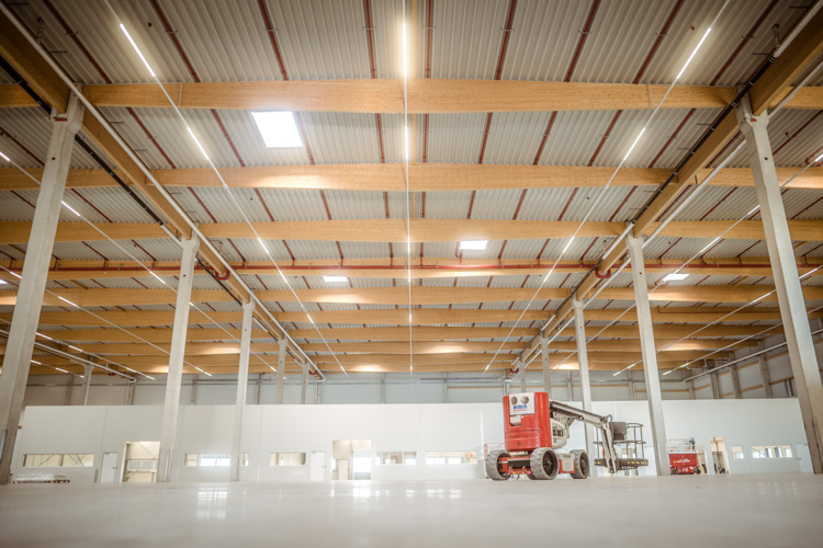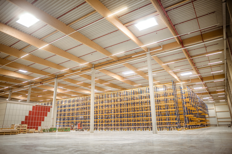 Das Objekt überzeugt durch eine flexible Gebäudestruktur mit großflächigen Lager- und Bürobereichen sowie einem separaten Sperrteilelager. Für höchste Sicherheit sorgt eine Sprinkleranlage nach FM-Global-Standard. Die Kombination aus Betonfertigteilen und nachhaltigem Holzleimbinder-Dachtragwerk steht für eine langlebige und effiziente Bauweise.